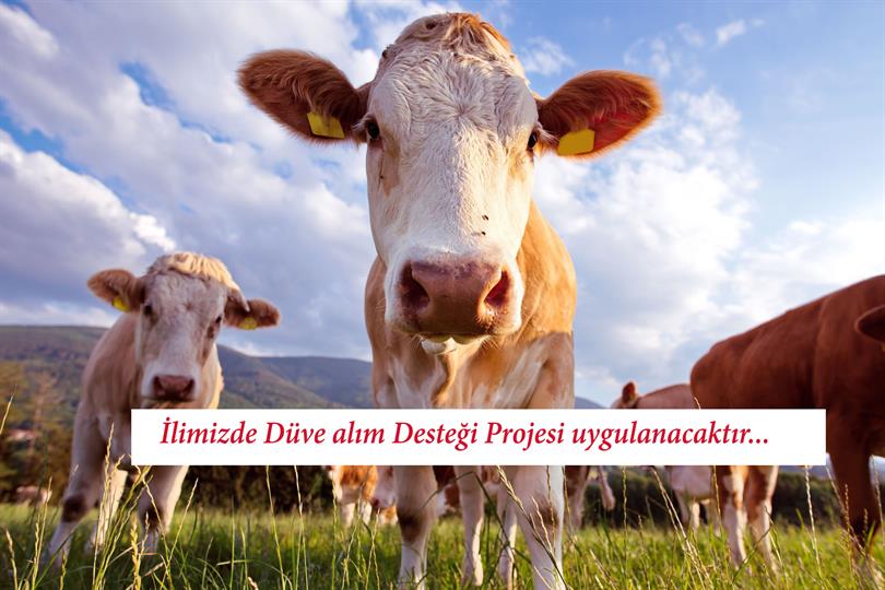 2017 Yılında yapılacak Tarımsal Desteklemelere İlişkin 05.06.2017 tarihli ve 2017/10465 sayılı ''Bakanlar Kurulu Kararı'' ve 26.08.2017 tarihli ve 30166 sayılı Resmi Gazetede Yayımlanan ''Hayvancılık Desteklemeleri Hakkında Uygulama Esasları Tebliği (Tebliğ No:2017/32)'' çerçevesinde İlimizde Düve alım Desteği Projesi uygulanacaktır.