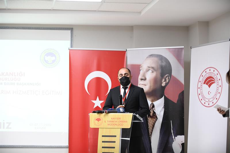 Bu kapsamda Kayseri İl Tarım ve Orman Müdürlüğünde 27 İl Müdürlüğünün katılımı ile Organik Tarım ve İyi Tarım Uygulamaları hizmet içi eğitimi düzenlendi. Saygı duruşu ve İstiklal Marşı'nın okunmasıyla başlayan eğitimin açılışında konuşan İl Müdürümüz Mustafa Şahin; “sanayi kenti olarak bilinen Kayseri'nin ciddi şekilde tarım şehri olduğunu kaydederek; "Kayseri ilinin genel profiline bakıldığında sanki sanayi şehriymiş gibi düşünülen, ama aslında tarımsal üretim ve potansiyeli oldukça yüksek bir il olduğunu özellikle belirtmek isterim. 6 bin yıllık kadim bir tarihten geliyor Kayseri. Kayseri tarihi, kültürü, yemeği neyini sayarsanız sayın Türkiye'deki önemli illerden bir tanesi. Bunun içerisinde tarımı da hiçbir şekilde ikinci plana atmıyoruz. Türkiye'deki birçok ürünün yetiştirildiği ve birçok üründe de Türkiye'de liderlik vasfını taşıyan bir ildir Kayseri. Türkiye'deki çerezlik ay çekirdeği yetiştiren iller içerisinde en fazla yetiştiren şehir Kayseri, neredeyse ülkenin ihtiyacının yüzde 35’ini biz karşılıyoruz. Yine kabak çekirdeğinde ülke ihtiyacının neredeyse yarısını yine biz karşılıyoruz. Bununla beraber şeker pancarında, patateste, elma gibi birçok üründe en önlerdeyiz. Kayseri'ye il müdürü olmadan önce bir Malatyalı olarak buradan gelip geçerken Kayseri'nin sanayi şehri olduğunu düşünüyordum ama Kayseri gerçek anlamda bir tarım şehriymiş, içine girince bunu daha da yakından görmüş olduk. Kayseri kendi içerisinde 2010 yılından beri organik tarımla uğraşan küçük bir kitle varken, şimdi bu rakamlar her geçen gün biraz daha artmaya başladı. 2012 yılında 7 üreticiyle başlayan organik tarım, 80 dekarlık bir alandayken, 2019 yılı verilerine göre 50 üreticimizle 1.650 dekarlık alanda ve 10 ilçede üretim yapan seviyelere çıktık. Yine organik tarımla alakalı 2 adet açık olan organik pazarımız da mevcut ilimizde. İnşallah benzeri pazarları artırmayı hedefliyoruz. Bununla birlikte iyi tarımın aslında vazgeçilmez olduğunu bir kez daha belirtmek istiyorum. Buradaki arkadaşlarımızın bir çoğunun aldıkları bu eğitimden sonra iyi tarım uygulamalarıyla alakalı yollarına devam edeceklerini düşünüyorum. Bu anlamda baktığımızda iyi tarımın organik tarıma oranla biraz daha rahat yürütülebildiği ve daha fazla insana temas edebileceğini düşünüyorum. Tabi ki bu ülkede konvasyonel tarımın da, organik tarımın da, iyi tarımın da eş güdümlü olarak devam etmesi, temiz olan sahaların bozulmaması anlamında elimizden gelen tüm gayreti sarf edeceğimizi belirtmek istiyorum" dedi.