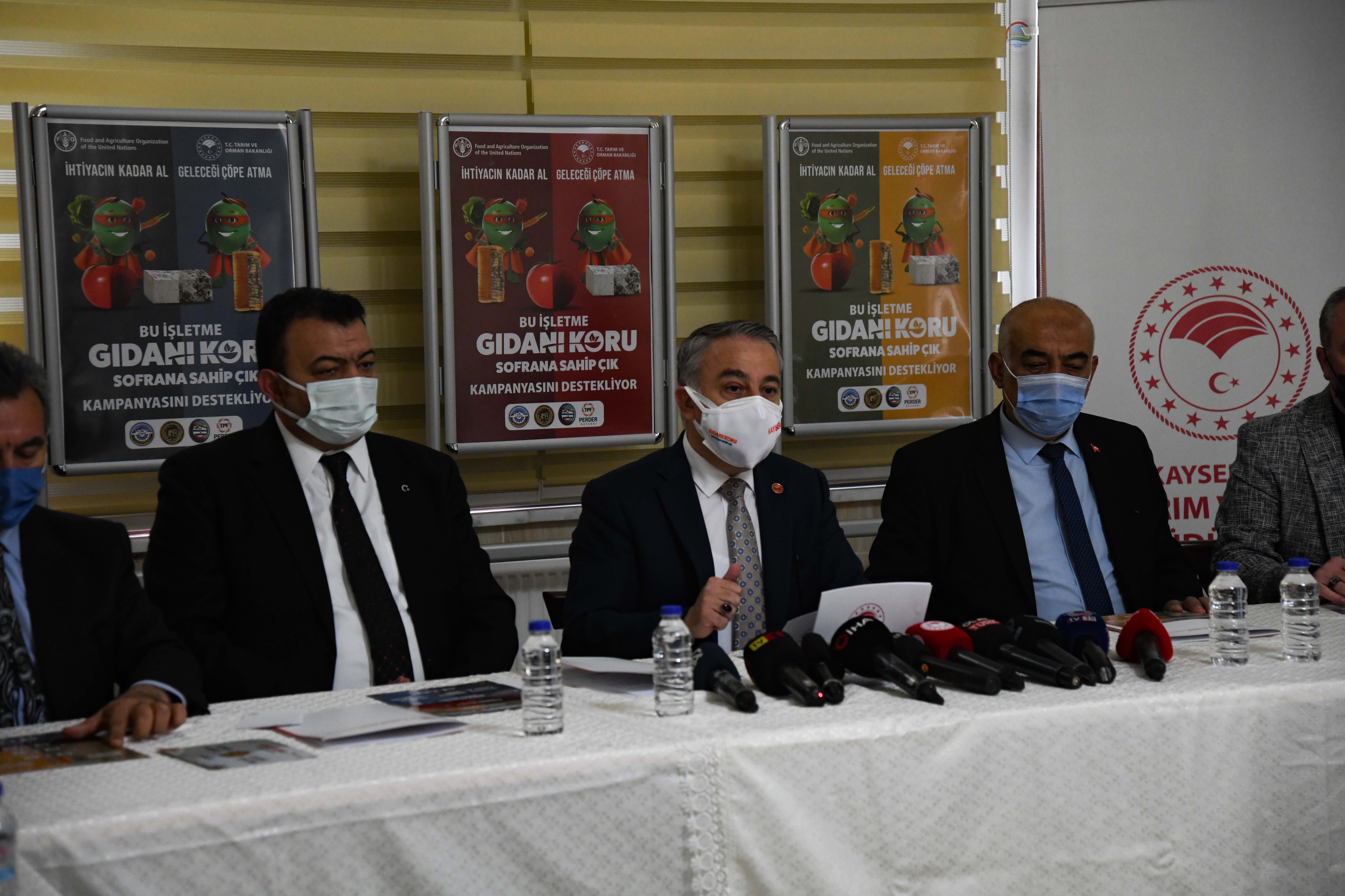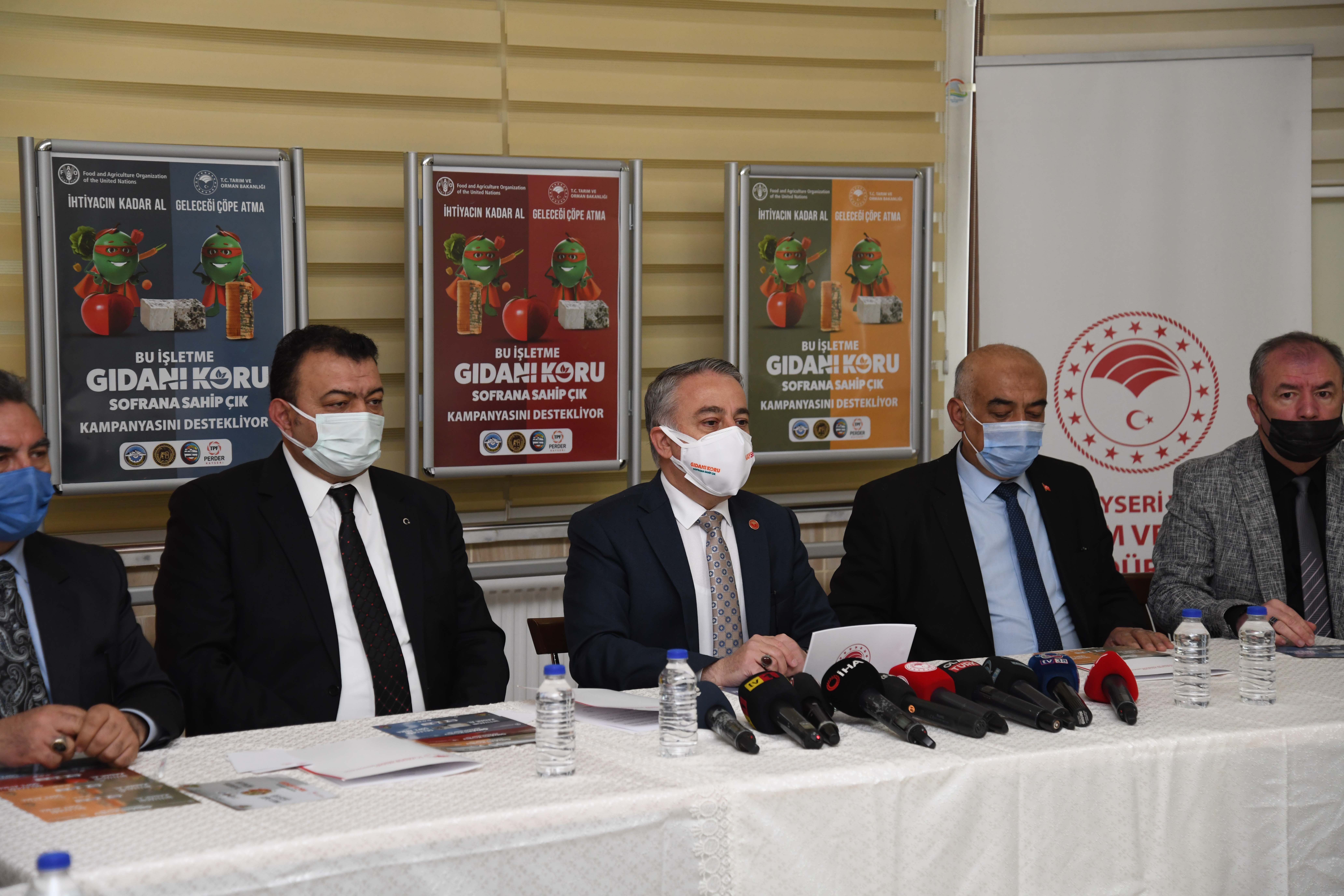 Gıdada kayıp ve israfla mücadelede toplumsal bilincin arttırılmasını hedefleyen "Gıdanı Koru Sofrana Sahip Çık" kampanyası için İl Tarım ve Orman Müdürümüz Mustafa ŞAHİN başkanlığında, Fırıncılar ve Uncular Odası Başkanı Mustafa ARSLAN, Lokantacılar ve Pastacılar Odası Başkanı Altan AYDEMİR, Kayseri Per-Der Genel Sekreteri Halil KURT, Esnaf ve Odaları Birliği Başkan Yardımcısı Kenan Arslan'ın katılımları ile tanıtım toplantısı gerçekleştirildi.