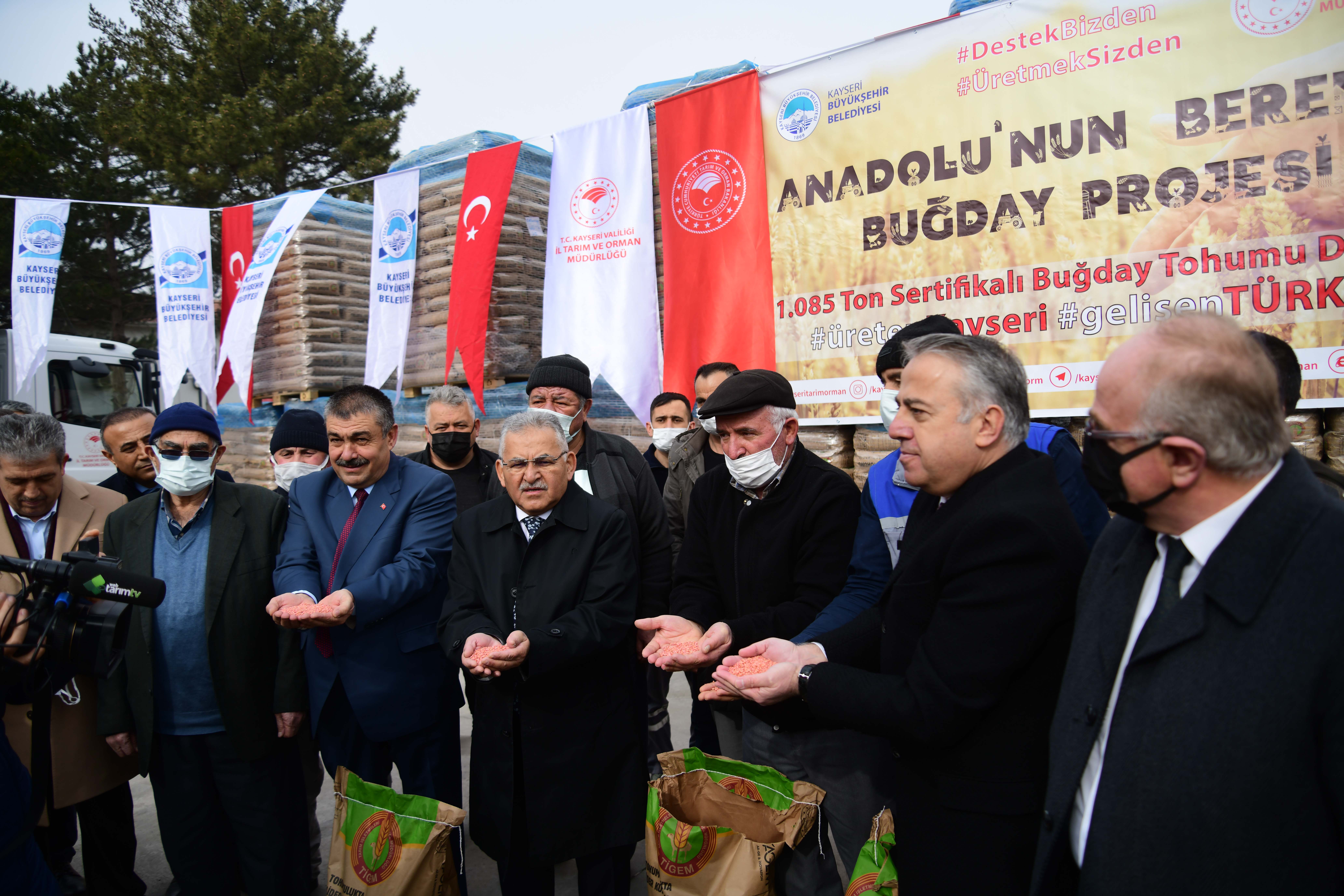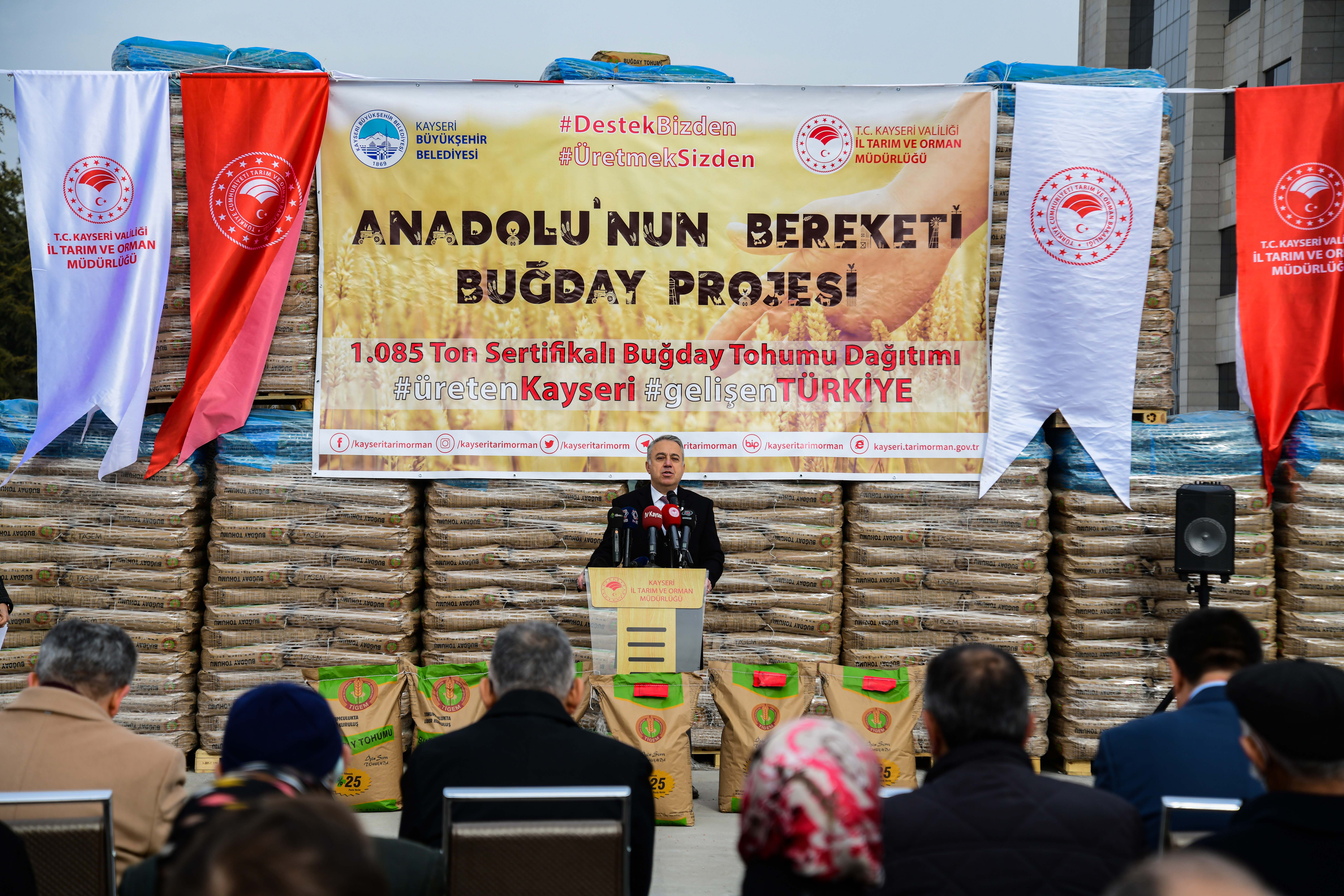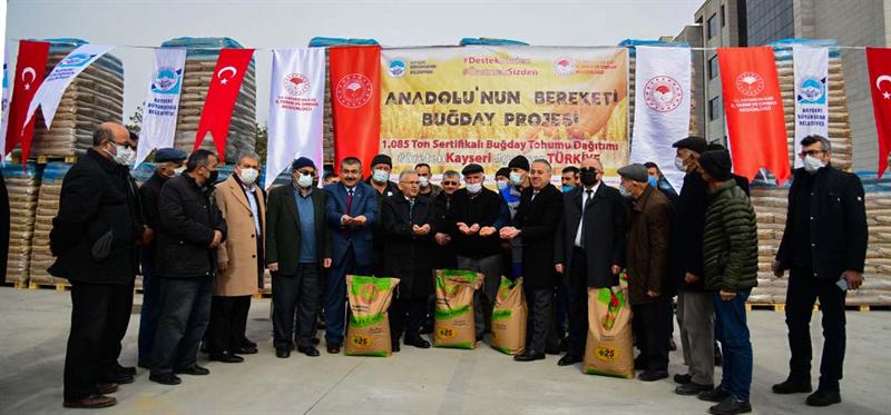 Bakanlığımız Bitkisel Üretim Genel Müdürlüğü ve Kayseri Büyükşehir Belediyesi tarafından desteklenen ve 2022 üretim sezonunda İl Müdürlüğümüzce uygulamaya konulan "Anadolu'nun Bereketi Buğday Projesi" tohumluk dağıtımı gerçekleştirildi.