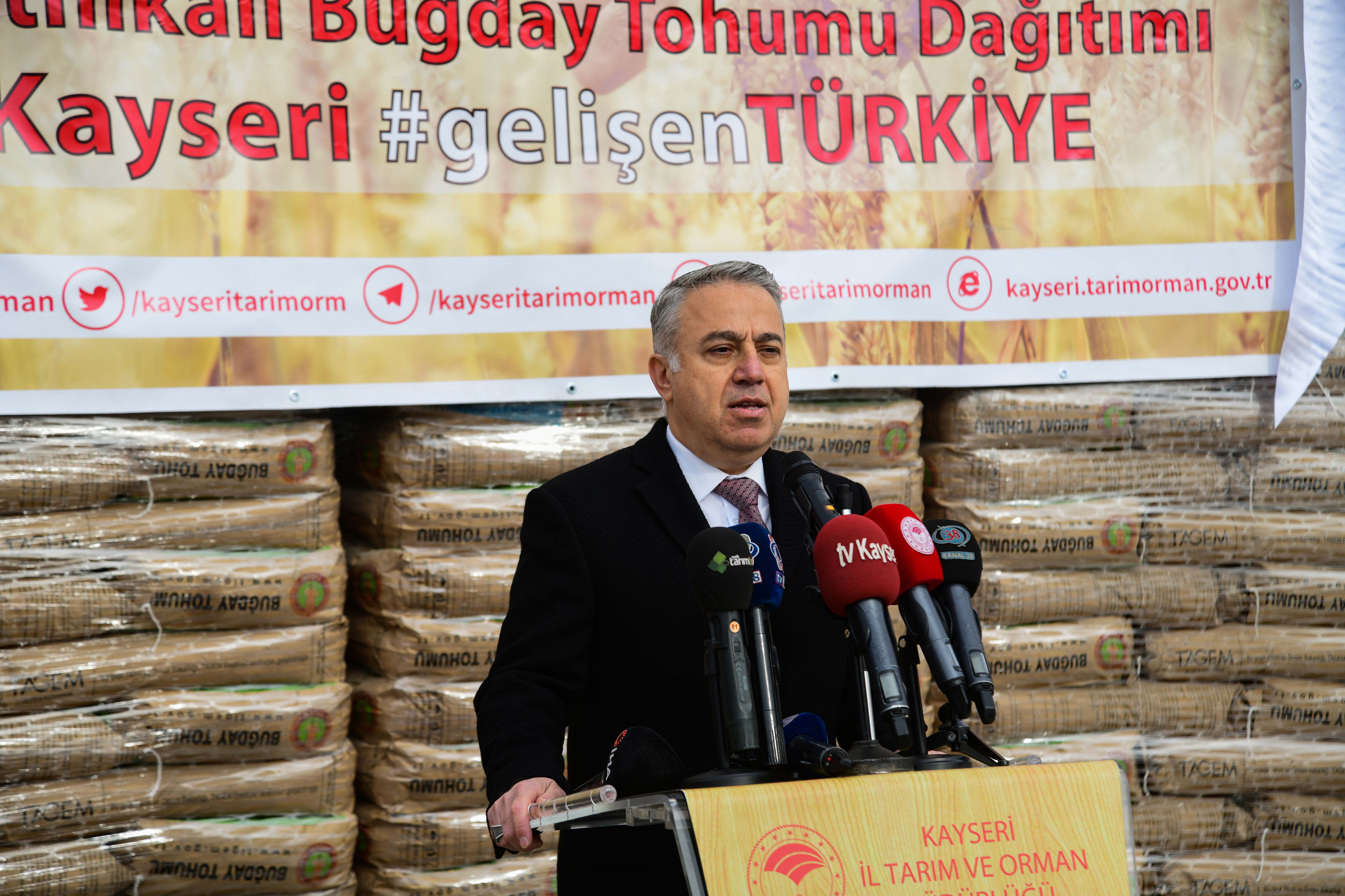 Tohum dağıtımı töreninde açıklama yapan İl Müdürümüz Mustafa ŞAHİN; "Yaşadığımız pandemi sürecinde tarımsal üretime bağlı gıda arzının ve sürdürülebilirliğinin önemi ülkemizde ve Dünyada net bir şekilde ortaya çıkmıştır. Ülkemiz bu zorlu süreçte oluşabilecek gıda arzı sorunlarına erken müdahale ederek, sürekli yeni çözümler üretmektedir. Bu çözümlerin temel taşı ise buğdaydır. Buğdayı ayrıcalıklı kılan ise temel besin kaynağımız ve sofralarımız baş tacı olan ekmektir. Bu bağlamda buğdayın kültürümüzdeki yeri daima özel olmuştur.
