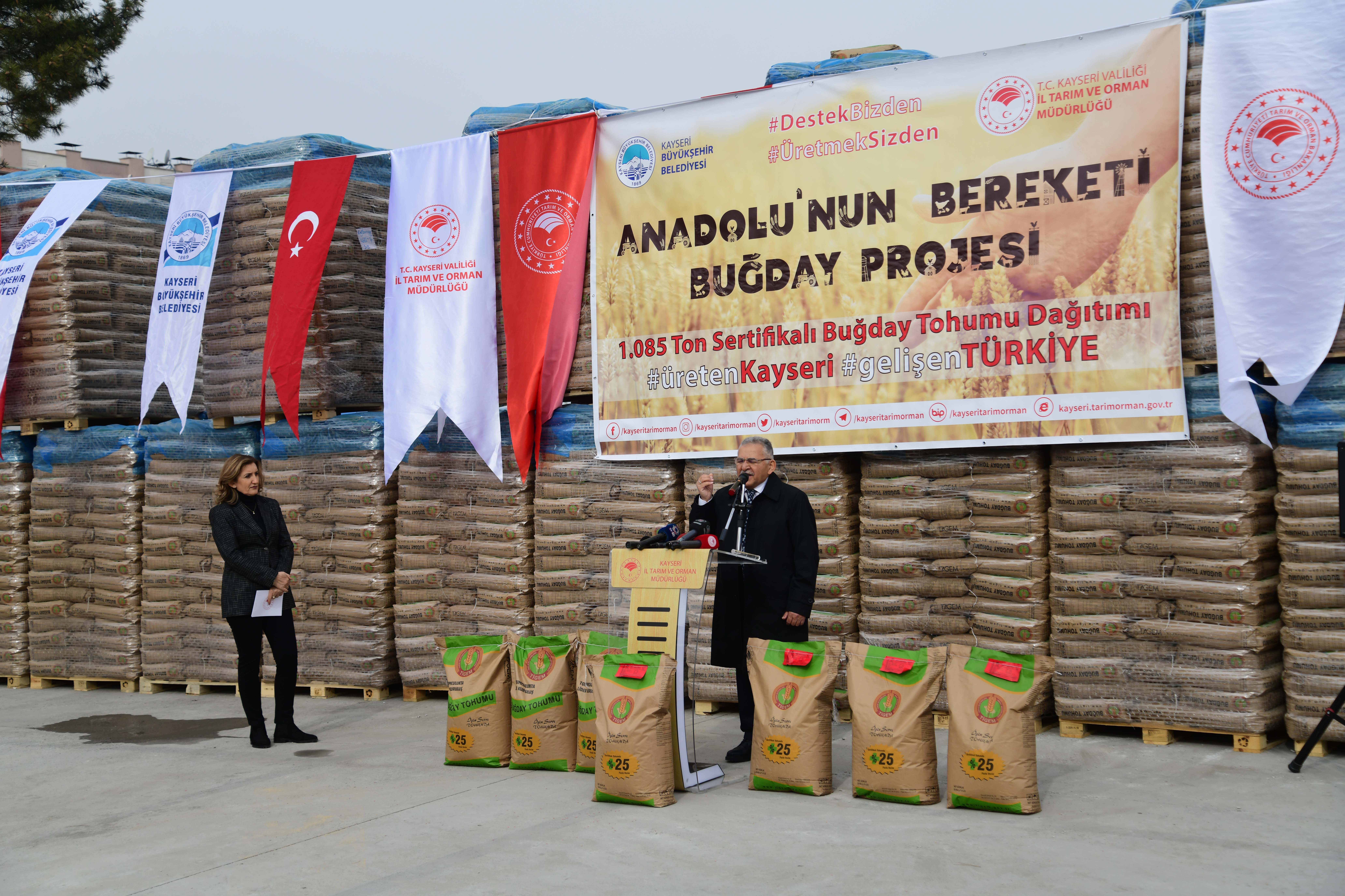 Büyükşehir Belediye Başkanı Dr. Memduh BÜYÜKKILIÇ dağıtım töreninde; "Kayseri'de tarım ve hayvancılığa önemli katkı sağlayacak projelere Büyükşehir Belediyesi olarak desteklerimiz artarak devam edecektir. İl Tarım Müdürlüğü ile birlik, beraberlik ve dayanışmanın en güzel örneklerinden birini daha bu buğday dağıtımı projesiyle yaşamaktayız. Proje kapsamında 12 ilçemizde uygulanacak olan bu projede yer almaktan mutluyuz. Tarım ve hayvancılığa belediye olarak desteklerimiz artarak devam edecektir. Çiftçilerimize bereketli bir yıl diliyorum." Dedi.
