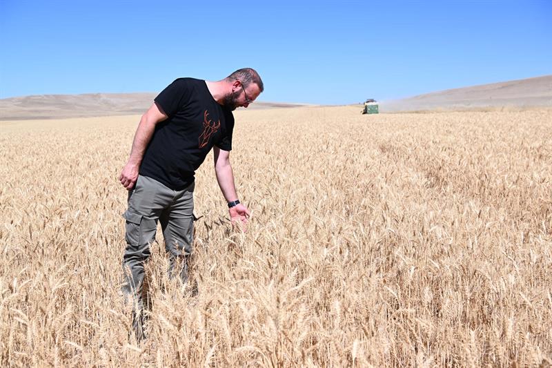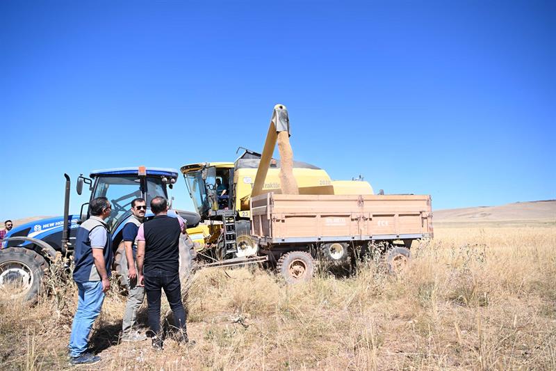 Biçerdöverin direksiyonuna geçerek hasada eşlik eden İl Müdür V. Sami YILMAZ “İlimizde uyguladığımız Tarım Arazilerinin Kullanımının Etkinleştirilmesi (TAKE ) Projesi ile çiftçilerimize hububat, aspir, yem bitkisi tohumları ve sebze fidesi teminine kadar farklı alanlarda destekler sağlıyoruz.