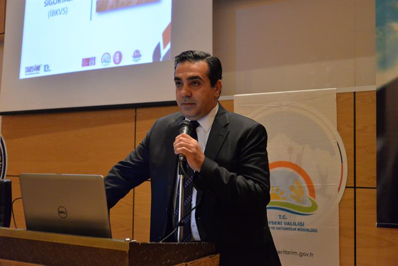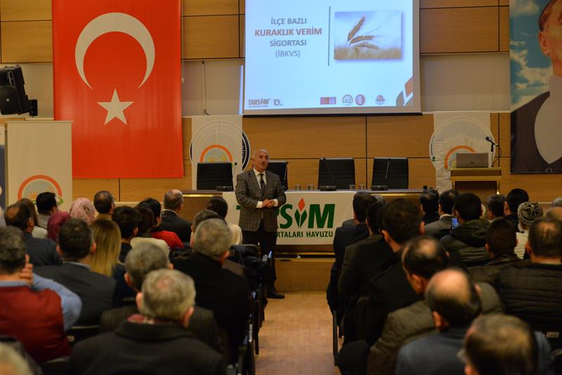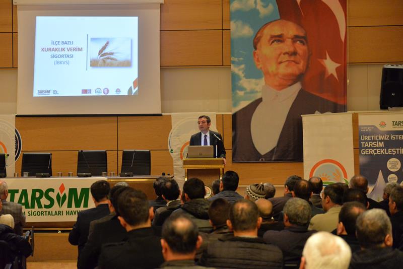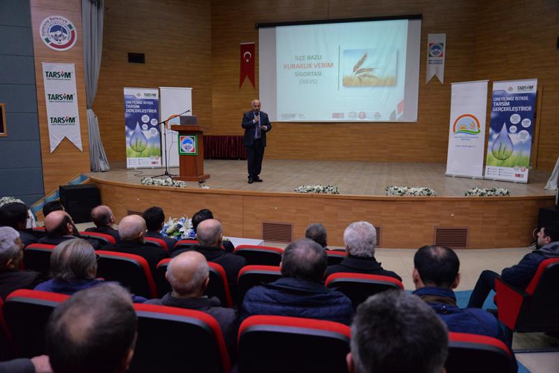 İl Müdür Yardımcımız Ayhan TEMİZ ise yaptığı konuşmada; Tarsim'in doğal afet ve hastalıkların tarım ve hayvancılıkta neden olduğu zararları güvence altına alan bir sistem olduğunu ifade ederek şunları söyledi: "Tarsim tarafından sigorta kapsamına alınacak riskler, ürünler, bölgeler ile devlet tarafından sağlanacak prim desteği miktarları her yıl Bakanlar Kurulunca belirlenmektedir. 2017 yılı uygulamalarının yer aldığı 2016/9673 sayılı Bakanlar Kurulu Kararı ile ilk defa ilçe bazlı kuraklık verim sigortasıyla kuru tarım alanlarında yetiştirilen buğday ürününde rüzgar, sıcak hava dalgası, aşırı nem, aşırı yağış risklerinden kaynaklı verim azalışları teminat kapsamına alınmıştır. Buğday ürününde sigorta priminin %60 oranında prim desteği sağlanacaktır. Büyükbaş ve küçükbaş hayvanlar için isteğe bağlı hırsızlık riski, kümes hayvanları için ölüm riski; denizlerde ve iç sularda yetiştirilen su ürünlerinin kafes ve ağları için ise sel ve su baskını risklerinin de bu yıl ilk defa teminat kapsamında alınmıştır."